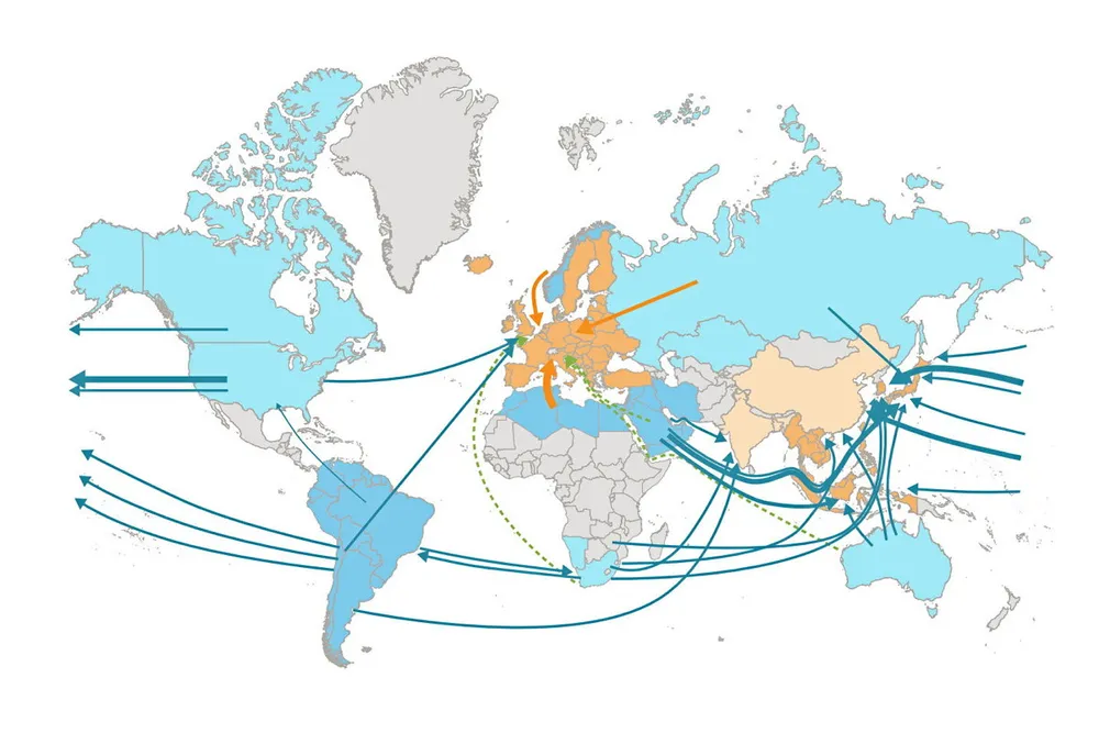 The US, the Middle East, Africa, Australia, Chile and Norway will largely become clean-hydrogen exporters, while the rest of Europe, India, China, South Korea, and Japan will mainly be importers.