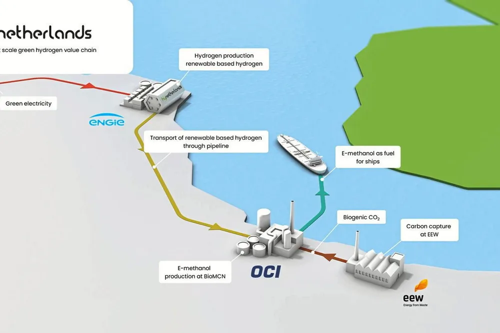 Previously announced HyNetherlands project has been reshaped to produce green methanol, which ‘will help lower Europe’s reliance on imported natural gas’