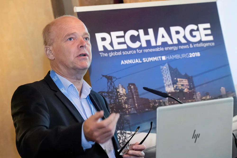 Henrik Stiesdal speaking at a Recharge industry summit.