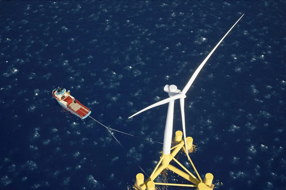 CGI of the Stiesdal Offshore TetraSpar in tow